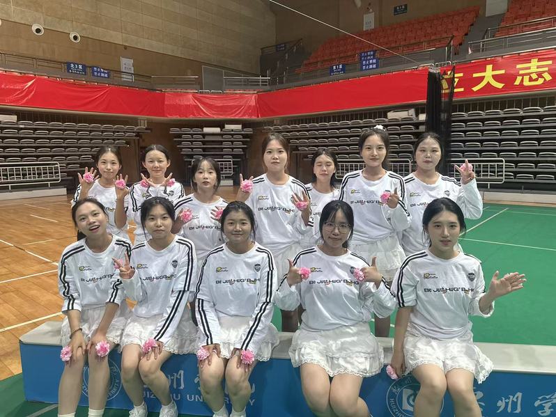 赛场上,外国语学院代表队伴随着动感旋律闪亮登场。队员们动作整齐划一,托举、跳跃等高难度动作行云流水,以青春的活力与默契的配合征服了现场观众与评委,阵阵掌声与喝彩将气氛推向高潮。最终,他们凭借出色的编排和稳定的发挥,在激烈角逐中荣获校级三等奖。